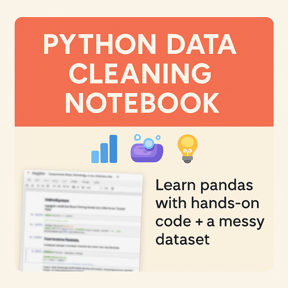 This beginner-friendly Jupyter Notebook teaches you how to clean messy data using Pandas, one of the most popular Python libraries for data analysis. You’ll work hands-on with a real (intentionally messy) dataset and learn to fix common issues like missing values, weird formatting, and duplicates.